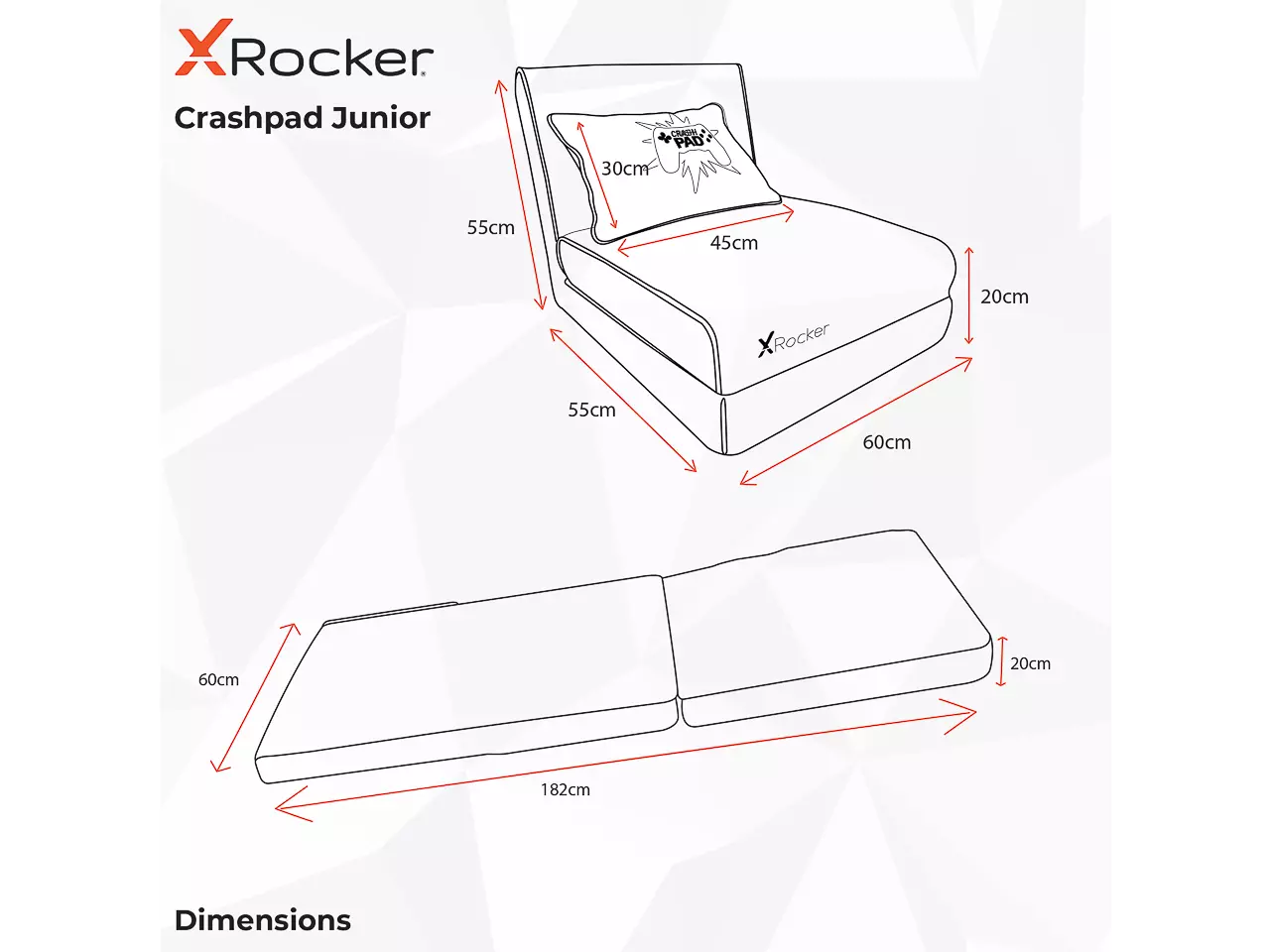 Produktinformationen "XROCKER CRASH PAD JR GAMING KLAPPSESSEL & SCHLAFSESSEL 5132901 Stoffbezug schwarz-rot"