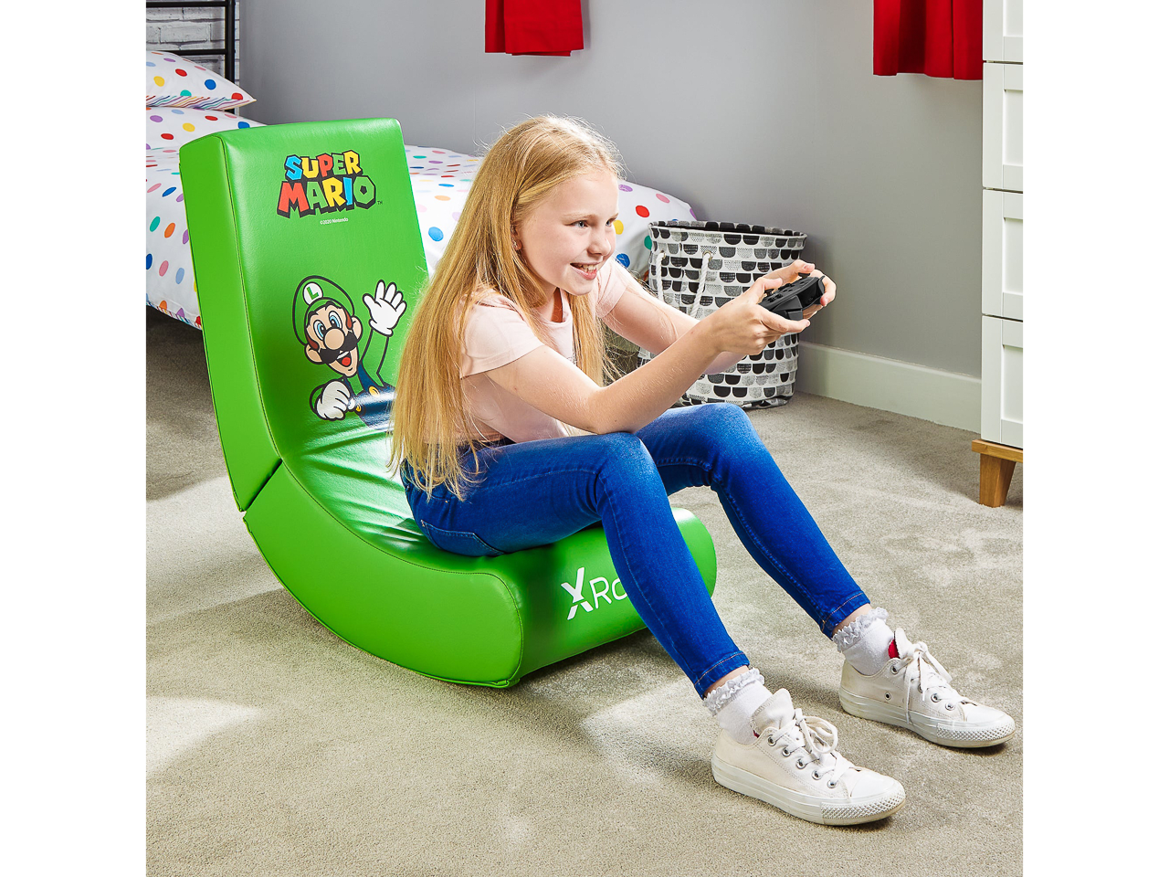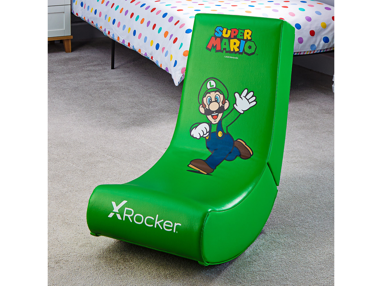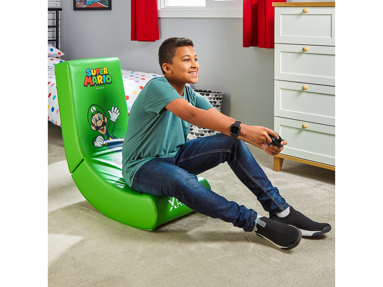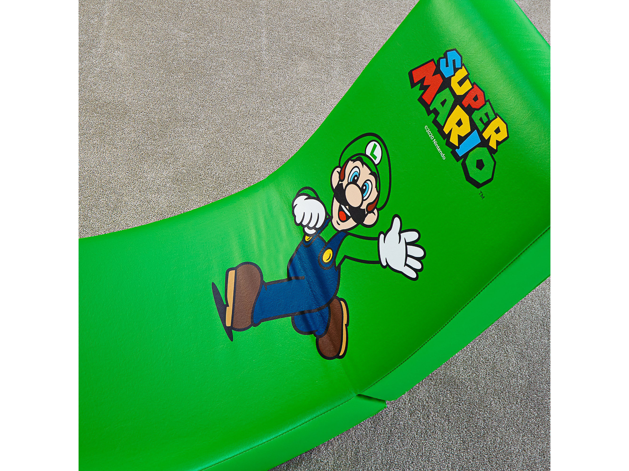 Mit dem X Rocker Nintendo Floor Rocker erhalten kleine und große Gamer in Kinder- und Wohnzimmern einen neuen Lieblingsplatz! Der coole Sessel zeigt Luigi, der beliebte Bruder von Mario und Held aus dem Nintendo Universum. Der Sessel wird direkt auf den Boden positioniert und überzeugt mit einer komfortablen Sitzposition zum Spielen und Relaxen. Dank der hochwertigen und bequemen Polsterung ist der Bodensessel auch für langes Verweilen geeignet. Besonders praktisch: Die Rückenlehne des Floor Rockers lässt sich einfach nach vorne auf die Sitzfläche umklappen, wenn der Sessel platzsparend verstaut werden soll.