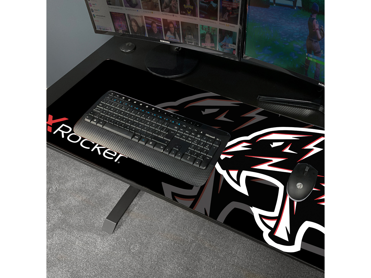 Der X Rocker Panther XL Ambi Gaming Eckschreibtisch ist die flexible Basis für lange Gaming Sessions, Hausaufgaben oder im Home Office. So bietet der Schreibtisch extra viel Platz zum Arbeiten, für die Ablage oder für Setups mit mehreren Monitoren. Besonders clever: Die lange Seite des Gamingtisches lässt sich auf der linken oder rechten Seite anbringen, so dass der X Rocker Panther XL Ambi für jede Wohnsituation geeignet ist. Optisch überzeugt der Tisch mit einem einfachen aber stylischen Design, das durch die dunkelgraue Carbon-Beschichtung der Tischplatte abgerundet wird.