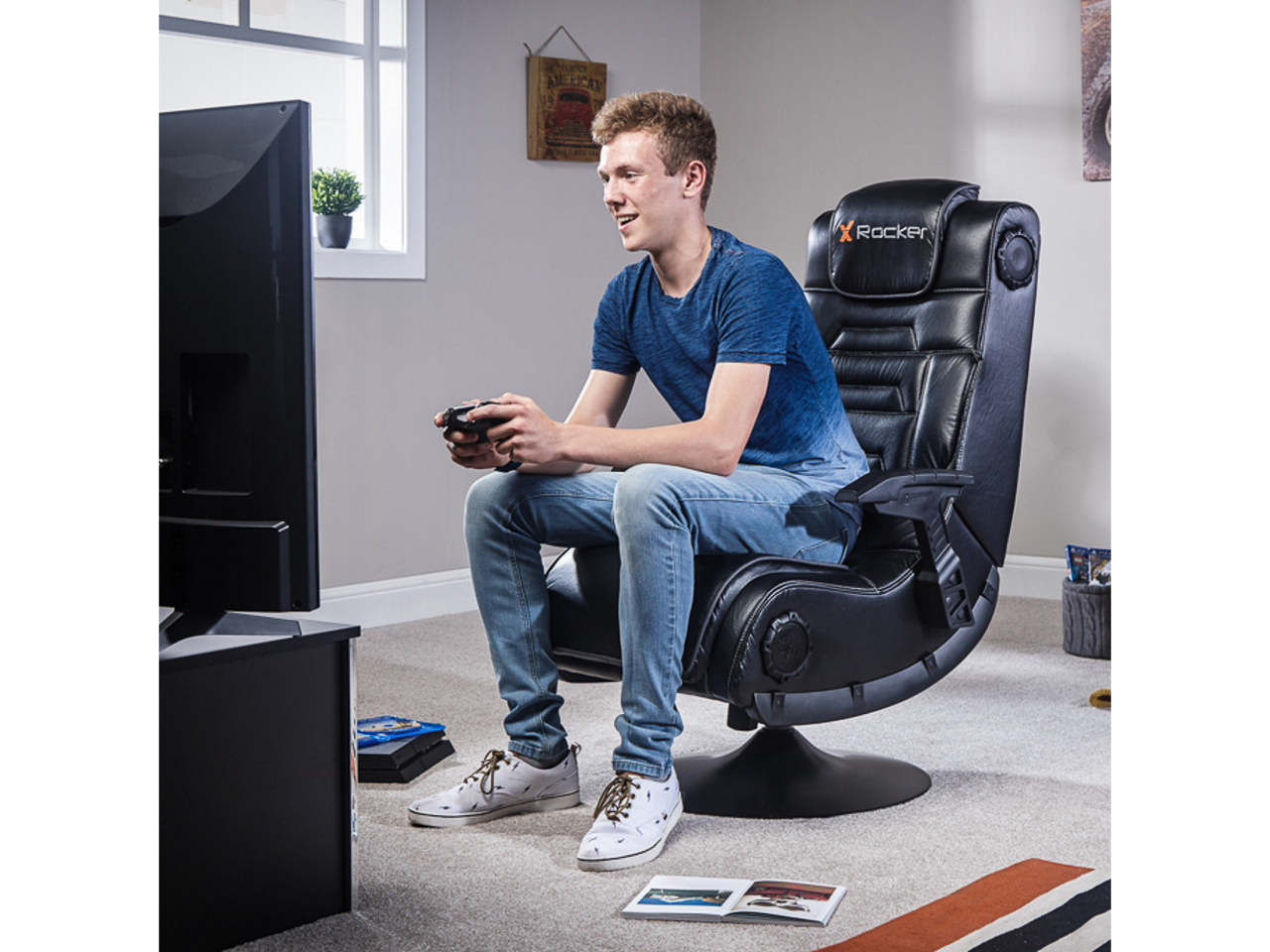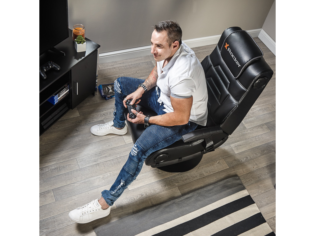 Der X Rocker Pro 4.1 bietet maximalen Komfort beim Spielen und erweitert das Gaming Erlebnis im Wohn-oder Gamingzimmer! So ist der Pedestal Sessel mit 4 Lautsprechern, die in der Kopfstütze verbogen sind, ausgestattet. Ein Subwoofer in der Rückenlehne sorgt zudem für einen satten Bass. Besonderes Highlight: Dank der Trimotor-Vibrationstechnologie werden Gamingaktionen spürbar! So reagiert der Sessel auf Soundereignisse und macht Spielsequenzen noch realistischer.