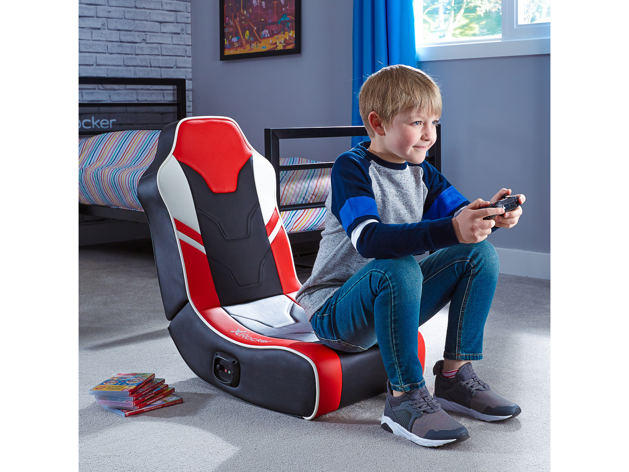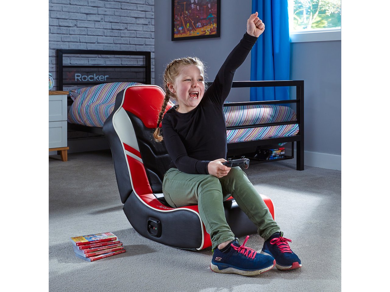 Mit dem X Rocker Shadow 2.0 erhalten kleine und große Gamer in Kinder- und Wohnzimmern einen neuen Lieblingsplatz! Der praktische Sessel wird direkt auf den Boden positioniert und überzeugt mit einer komfortablen Sitzposition zum Spielen und Relaxen. Der Sessel ist mit 2 Lautsprechern an der Kopfstütze ausgestattet und bietet ein tolles Sounderlebnis beim Konsolenspiel oder Musikhören. Direkt am Shadow 2.0 befindet sich ein praktisches Controlpanel, um Soundeinstellungen vorzunehmen. Außerdem werden hier Konsolen oder andere Geräte per Kabel an den Sessel angeschlossen. Ein zusätzlicher digitaler Audiotransmitter kann benötigt werden, sollte das TV-Gerät nicht über die entsprechenden Anschlüsse verfügen. Der entsprechende Transmitter ist separat erhältlich.