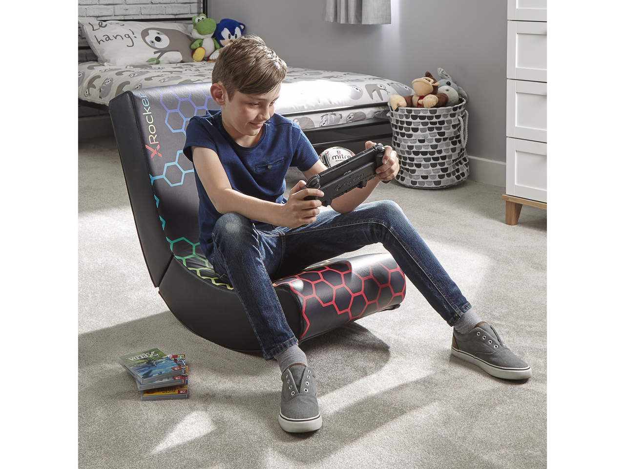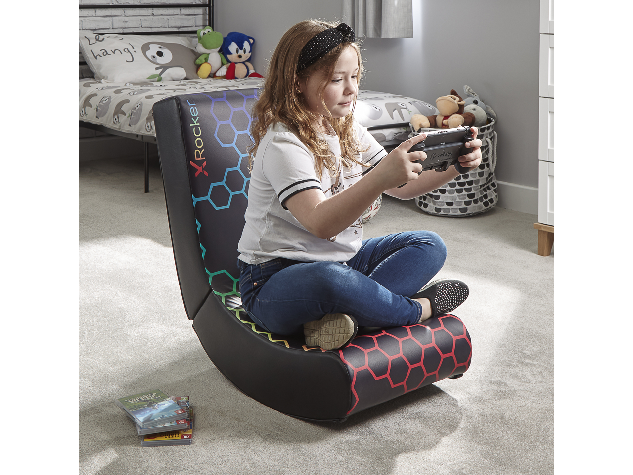 Mit dem Video Rocker von X Rocker erhalten kleine Gamer in Kinder- und Wohnzimmern einen neuen Lieblingsplatz! Der praktische Sessel wird direkt auf den Boden positioniert und überzeugt mit einer komfortablen Sitzposition zum Spielen und Relaxen. Dank der hochwertigen und bequemen Polsterung ist der Bodensessel auch für langes Verweilen geeignet. Besonders praktisch: Die Rückenlehne des Video Rockers lässt sich einfach nach vorne auf die Sitzfläche umklappen, wenn der Sessel platzsparend verstaut werden soll.