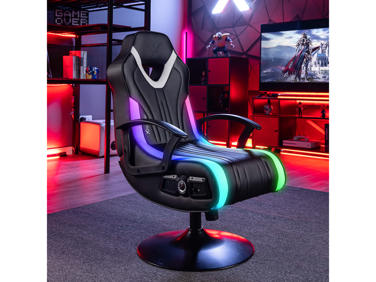 Shine bright! Mit dem X Rocker Fury 2.1 RGB Gamingsessel erstrahlt das Kinder- oder Wohnzimmer! So ist der komfortable Sessel mit der patentierten Neo Motion Beleuchtungstechnologie ausgestattet und leuchtet in 30 verschiedenen Farbvarianten. Außerdem bietet er coole Effekte wie Farbverläufe, um den Sessel besonders in Szene zu setzen.