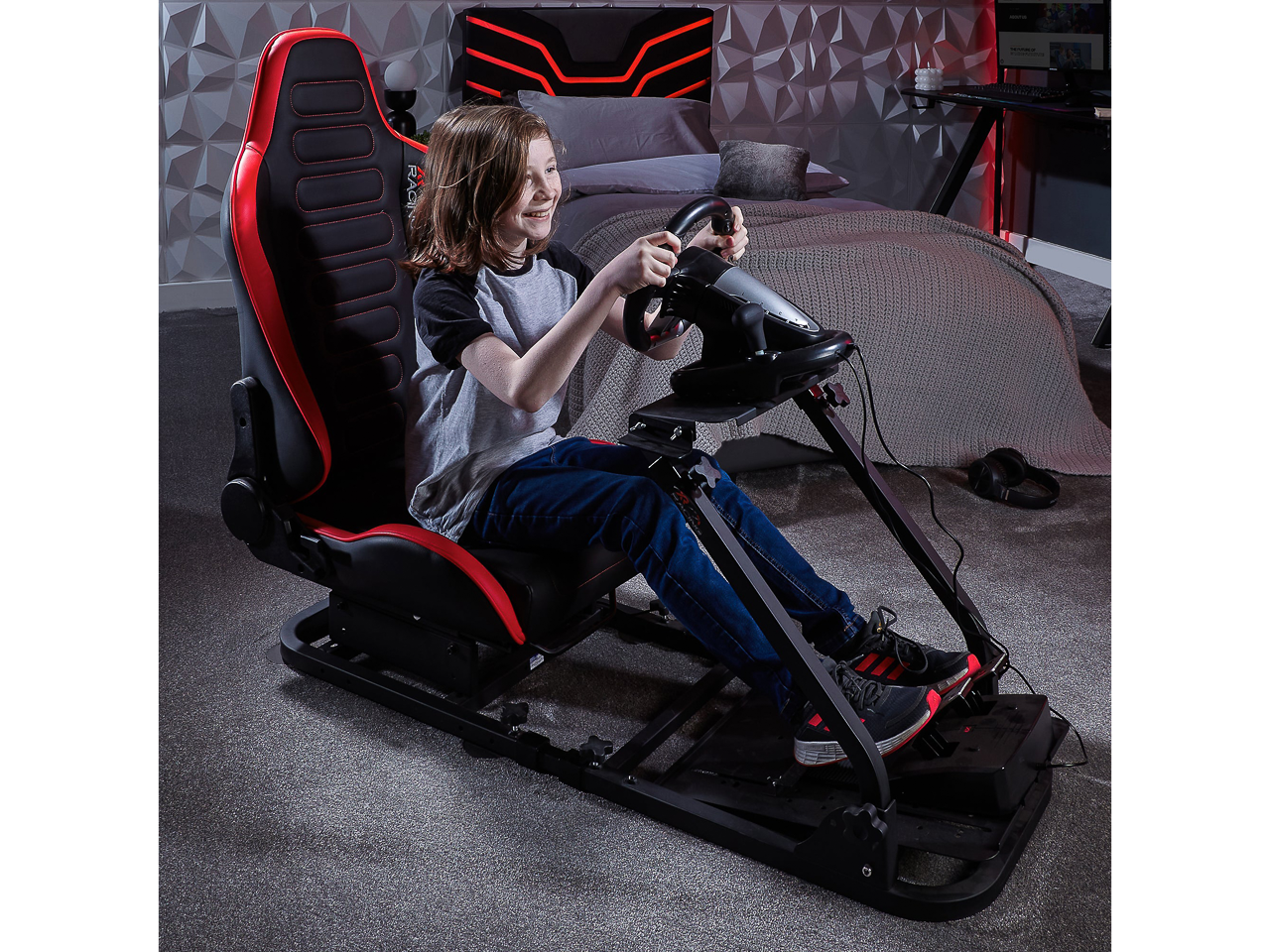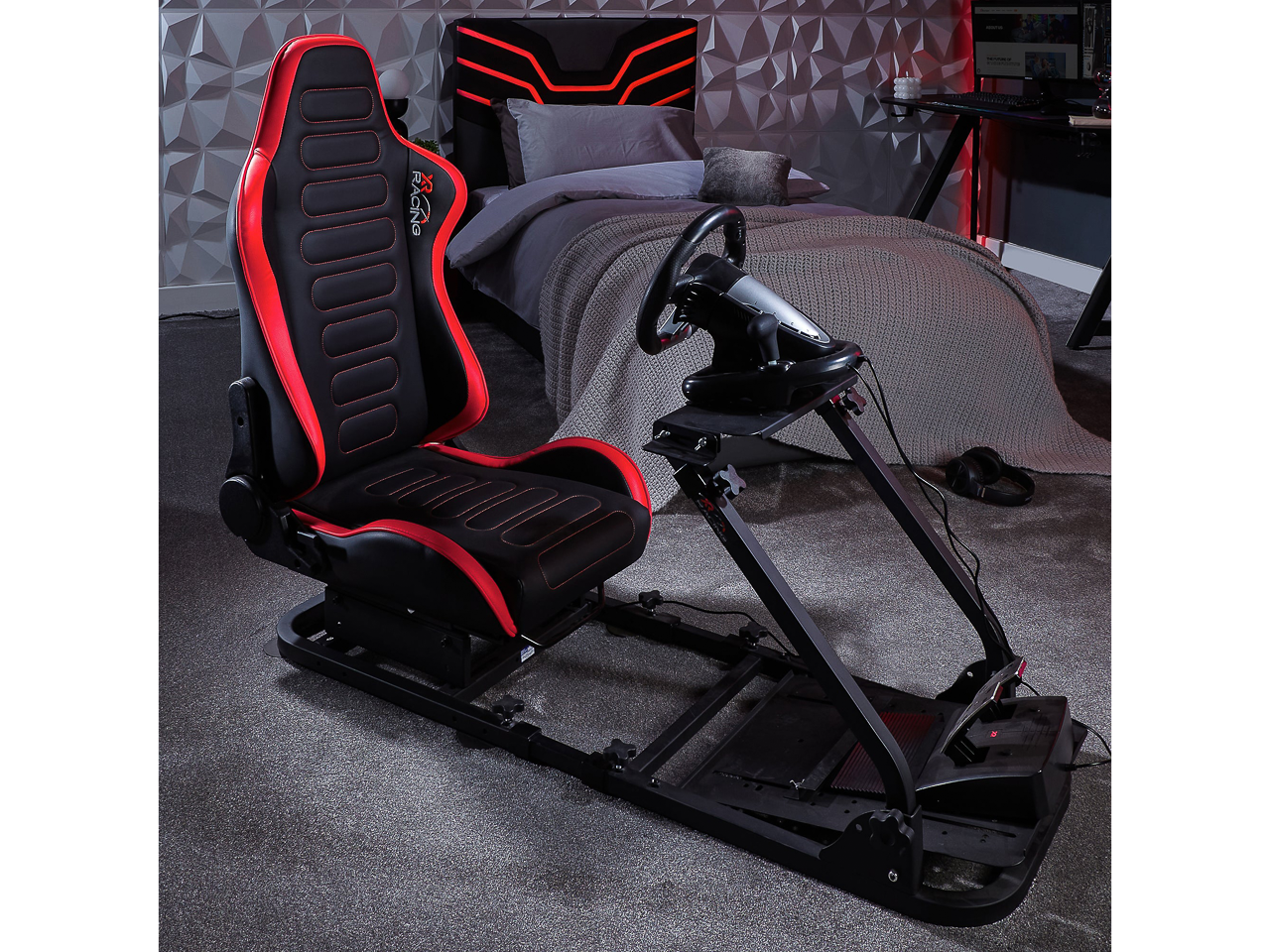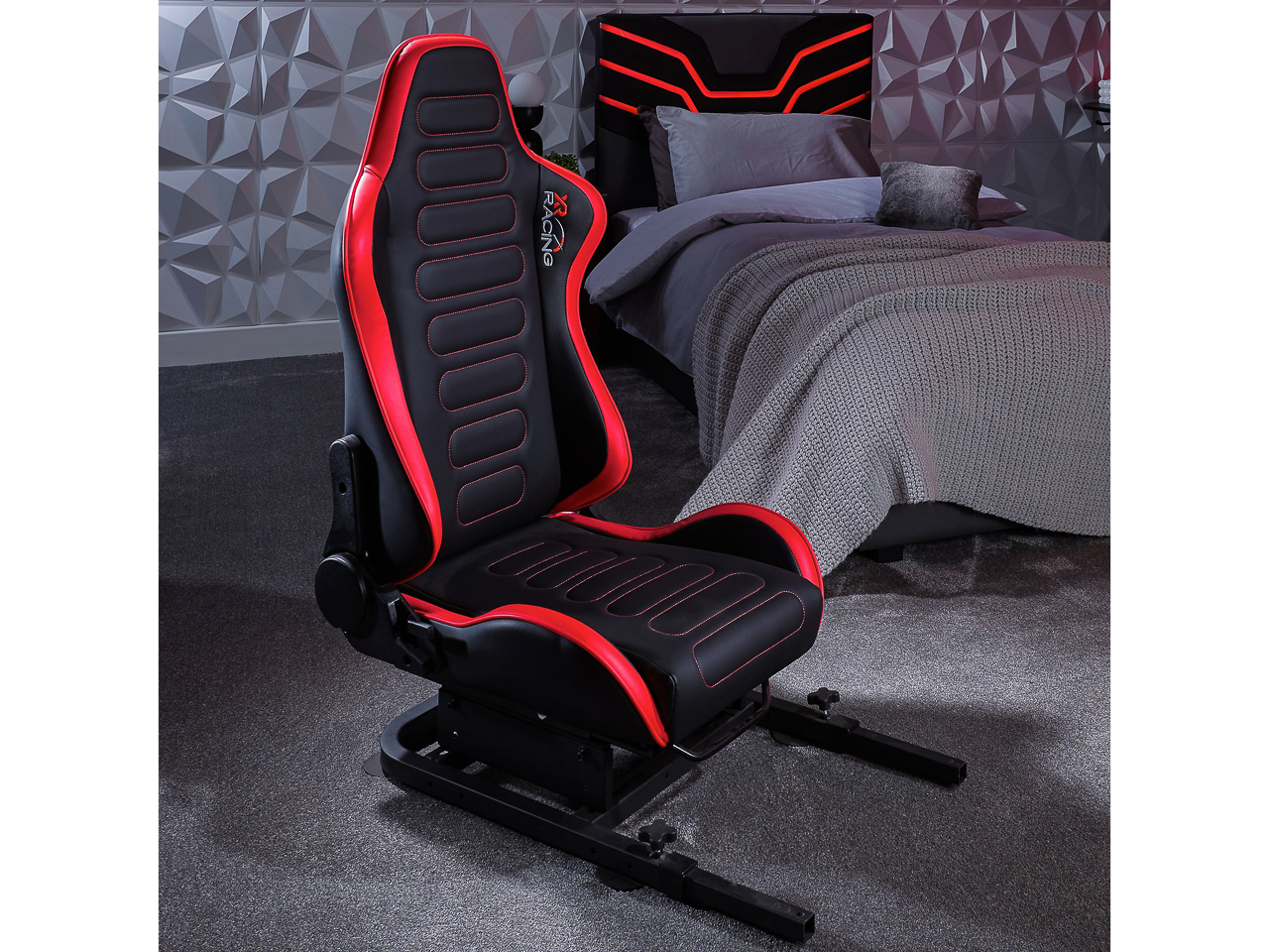 Mit dem XR Racing Chicane Rennsitz sitzen Gamer in der Pole Position! Der ergonomische Rennsitz lässt sich über das stabile Metallgestell mit einem einfachen Handgriff nach vorne oder hinten schieben, um die ideale Rennposition einzunehmen. Zusätzlich kann die Rückenlehne geneigt werden, um bestmöglich ins Rennen zu gehen.